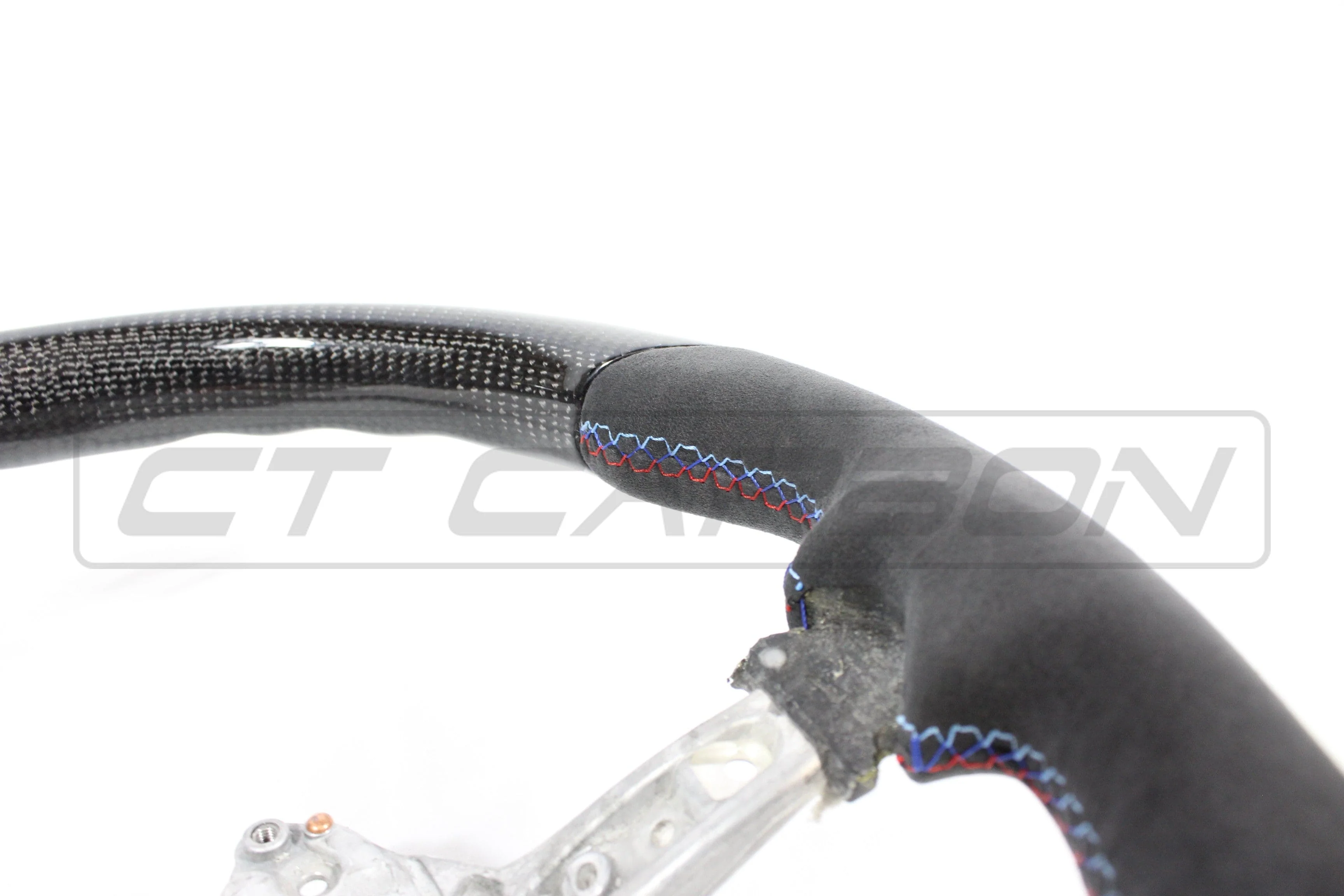 CT CarbonĀ steering wheel made from high-quality carbon fibre and Alcantara with stitching. Made using an original BMW steering wheel but transformed by CT Carbon.Ā